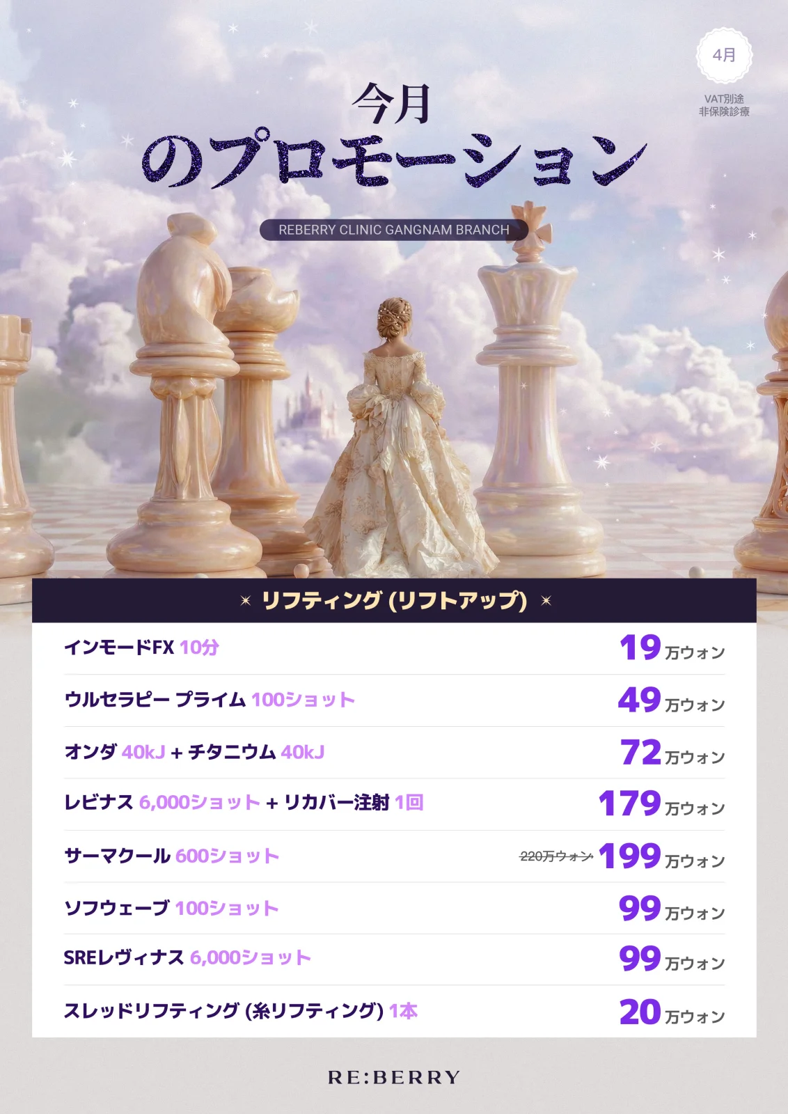 日本vs韓国 美容皮膚科 施術価格比較表 — RE:BERRY江南